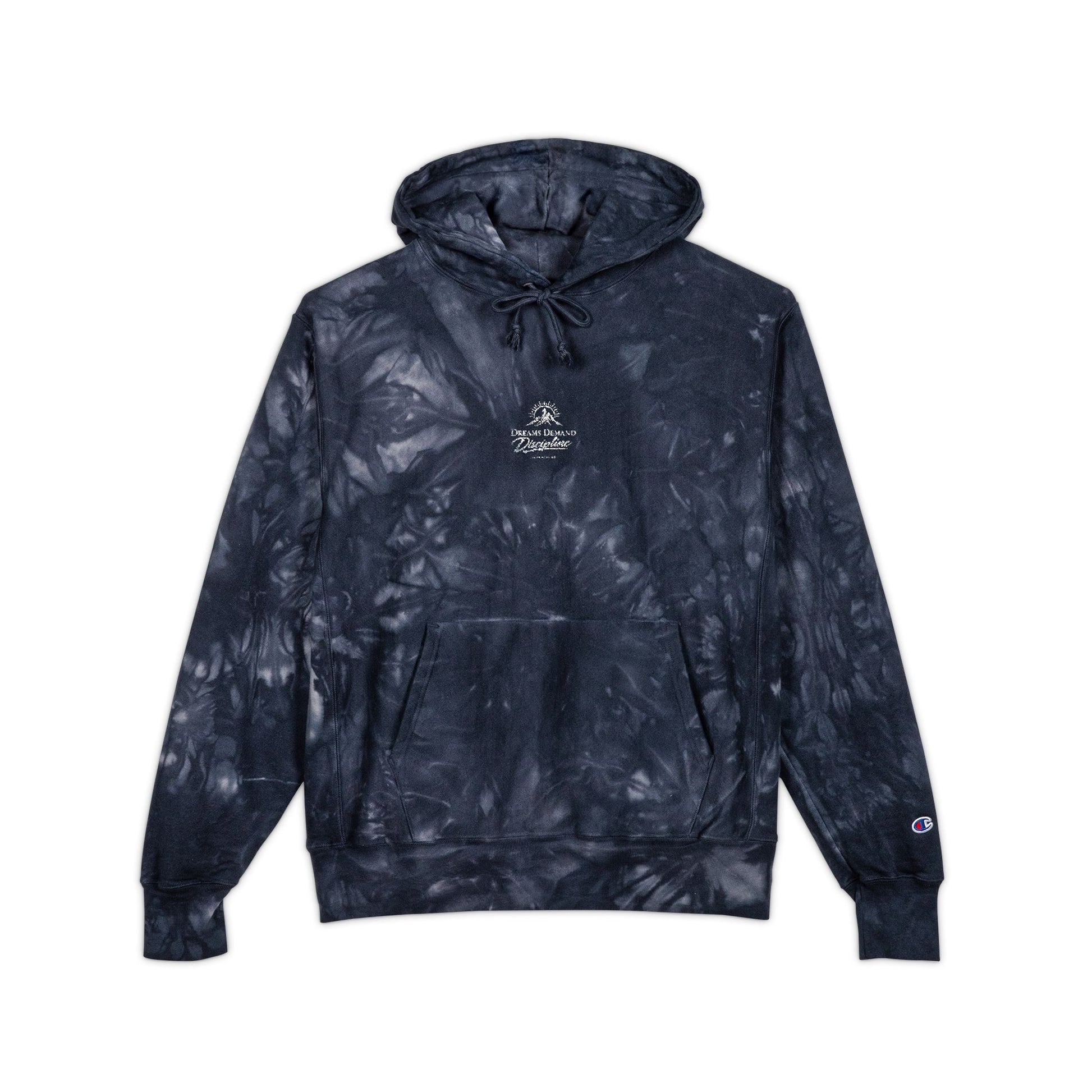 A heavyweight, scrunch-tie-dye hoodie that feels lived-in from the first wear. The dark, inky tie-dye creates a washed, cloud-like pattern that’s subtly different on every piece, framing a clean embroidered logo on the chest and the Champion “C” badge on the sleeve. Built with Champion’s Reverse Weave cross-grain construction and a dense 82% cotton/18% polyester fleece, this hoodie holds its shape through seasons and washes. Two-ply hood and matching drawcords add structure; ribbed side panels, cuffs, and hem lock in warmth. The roomy front pouch pocket keeps hands warm and small essentials close. It wears like something made for late-night drives, rooftop hangs, and easy weekends — a statement piece that blends street-ready durability with a one-of-a-kind dye effect.
